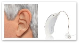 A BTE sets over the ear and has a tube which conducts the sound into the ear canal. It is recommended for severe to profound hearing losses, those with certain medical issues of the ear or children who are growing rapidly.